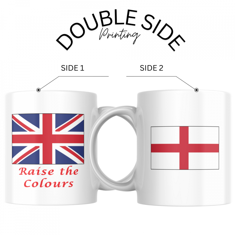 Raise the Colours Mug Print – UK Flag + Choice of England, Scotland or Wales Flag | Patriotic Tea & Coffee Cup Gift