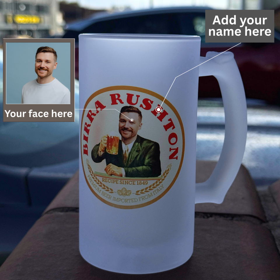 Custom Printed Birra Stein Beer Glass with Face and Name | Plain & Fully Personalised Printed Beer Mug option is also Available